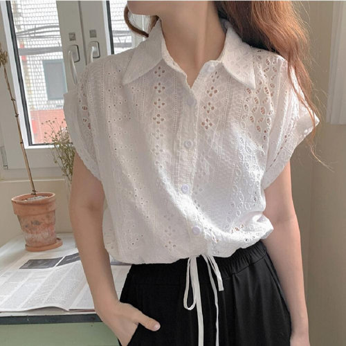 [이쁘다] 챠유 펀칭 아일렛 반팔 블라우스