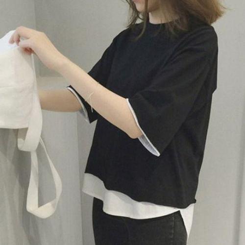 [에이치플러스몰]무지 여성 캐주얼 티셔츠 반팔 필수템 페이크레이어드