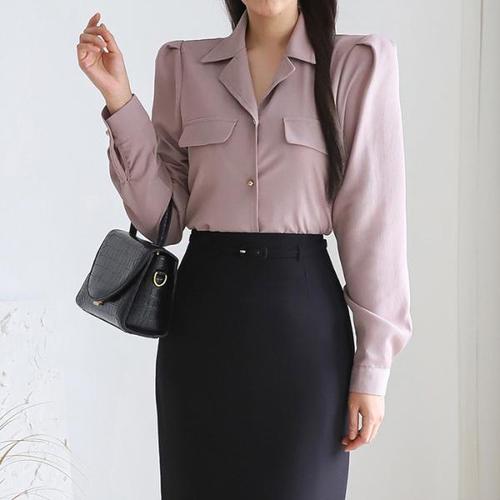 [모리스커밍홈][한정수량/특가] 페이크포켓 테일러드카라 블라우스_M2409BL193C