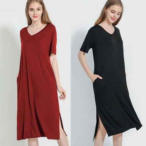 이쁘다요 브이 롱드레스 파자마 데일리 무지 포켓 원피스 WFLMEVO