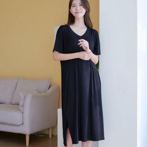 통통마녀 ] 무지 반팔 롱원피스 55~77 까지 착용 / 4컬러