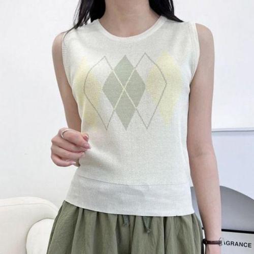 [에이치플러스몰]여자 베이직 여성 아가일 패턴 올데이 조끼 니트 포인