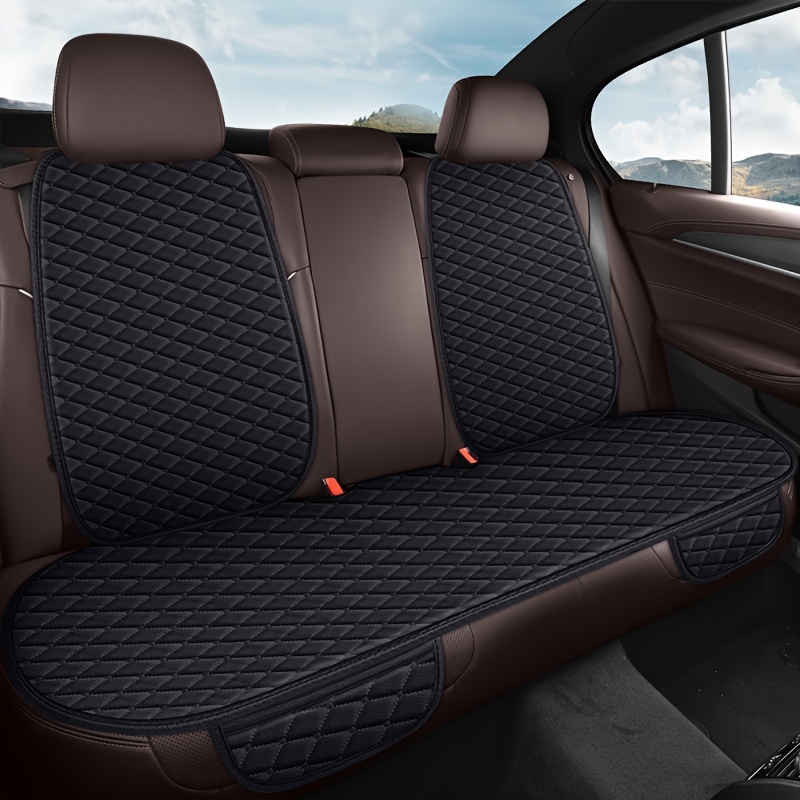 TEMU 리넨 텍스처 자동차 시트 쿠션 3피스 세트, 소형 마름모 자수, 범용 사계절 쿠션, 수납 포켓 포함, 앞좌석 쿠션 2개 + 뒷좌석 롱 쿠션 1개, 3피스 시트 쿠션 세트