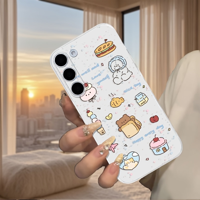 TEMU 삼성 갤럭시 모델 중 X 커버 5, 6 프로 및 여러 갤럭시 F, J, M 모델에 적합한 귀여운 음식 주제 투명 폰 케이스