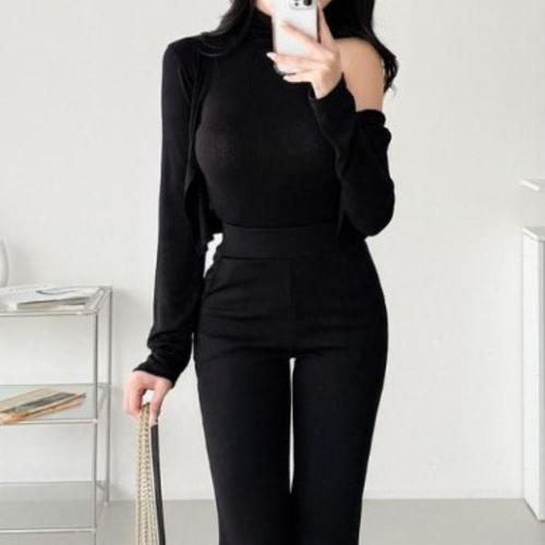 [다잇템][다잇템] 여성 슬리브리스 하이넥 일상용 골지 탱크 카디건 세트_23516686_588872