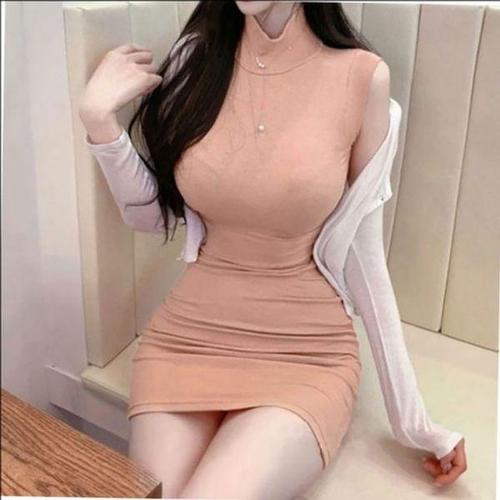 [에이치플러스몰]여자 반폴라 추천 H라인 민소매 꾸안꾸 스판 미니원피