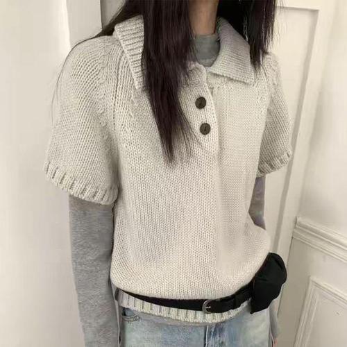 [다잇템]여자 일상룩 반소매 폴로 캐쥬얼 니트