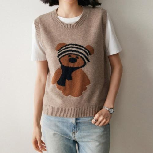 [다잇템]여자 폴리 U넥 베어 빅사이즈 캐쥬얼 베스트