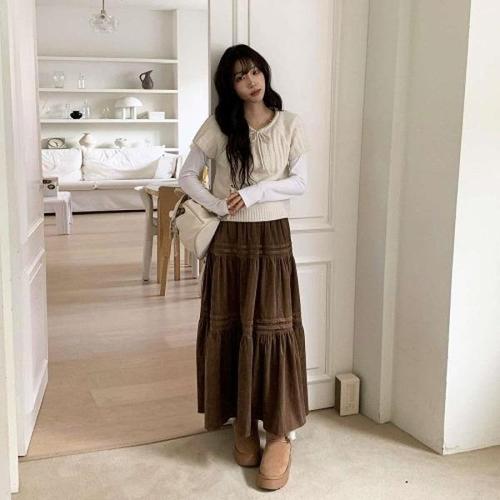 [다잇템][다잇템] 여자 고무줄 폴리 벨루어 티어드 롱스커트_23997288_588872