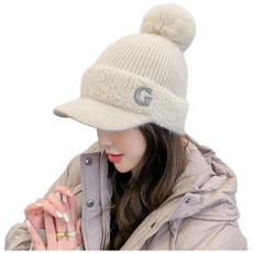 젬마 골프모자 토끼털 방울 폼폼 니트모자 여성 골프 등산 스키, 1개, 화이트