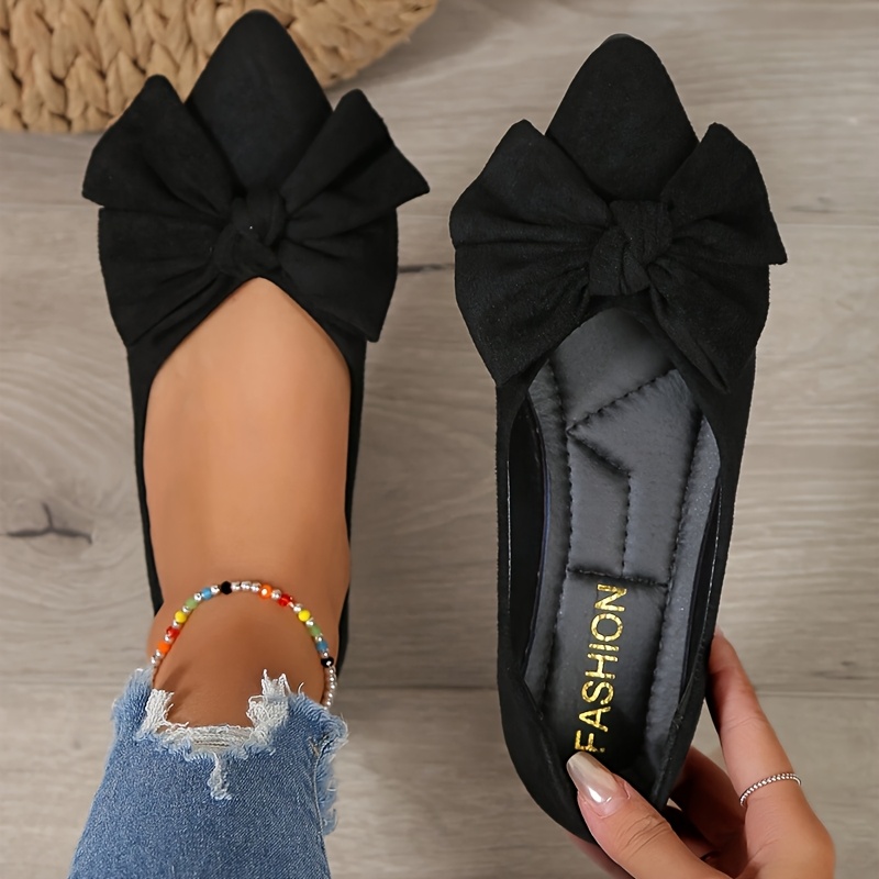 TEMU 여성용 솔리드 컬러 우아한 플랫, 얕은 입 발레에 Bowknot 장식 슬립, 부드러운 단독 경량 드레스 슈즈