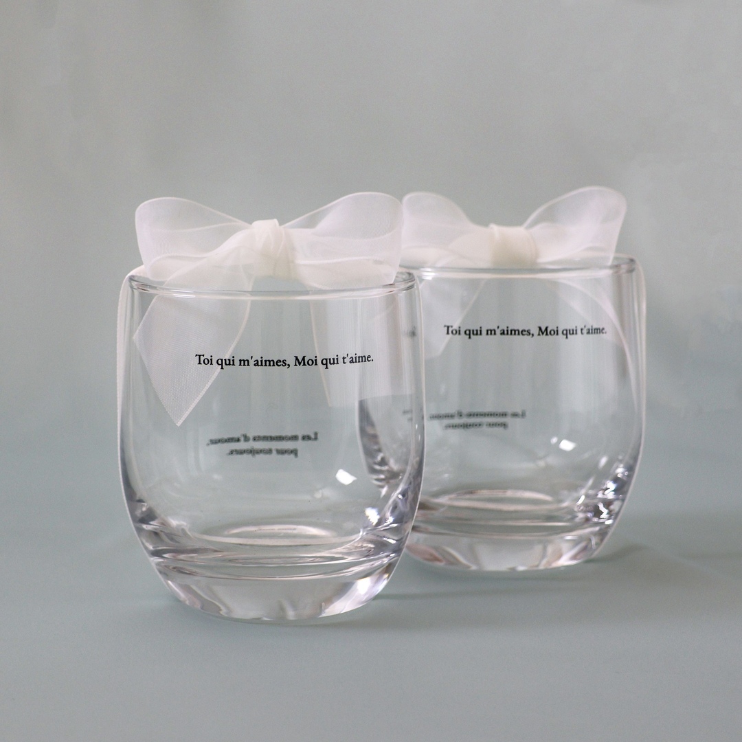 프렌치 감성 레터링 고블렛잔 2p 유리 와인잔 커피잔 주스 홈카페 인테리어 컵 집들이 선물