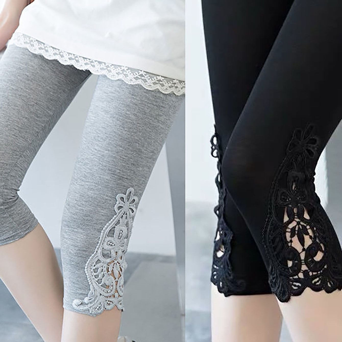 TEMU 여성용 여름 데일리 캐주얼 레이스 스판 7부 홈웨어 레깅스 슬림핏 자수 쫄바지 1+1 세트 슬림소녀 SLIM GIRL
