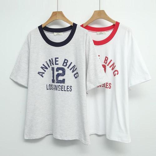 [옷자락] 여자 프리사이즈 면 배색 데일리 반팔 티셔츠