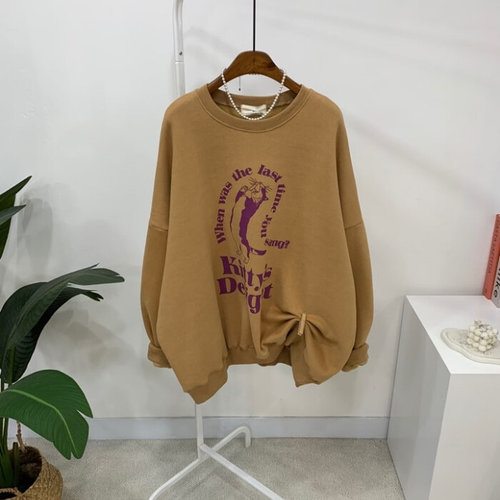 여성 박시핏 기모 안감 스?셔츠 캐주얼 그래픽 캐릭터 오버핏 맨투맨 프린팅