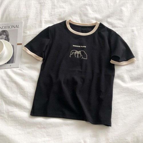 엘리몬드 오버핏 여자 티셔츠 데일리룩 여름 프린팅 반팔티
