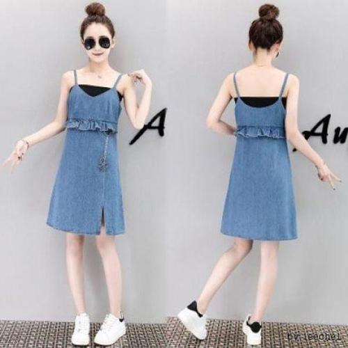 [에이치플러스몰]프릴 S1538 캐주얼 고리장식 청 필수템 데님 나시 민