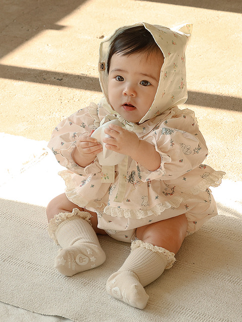 [아림클로젯] 숨어있는 아기 토끼 - 프릴 베이비 긴팔 바디슈트