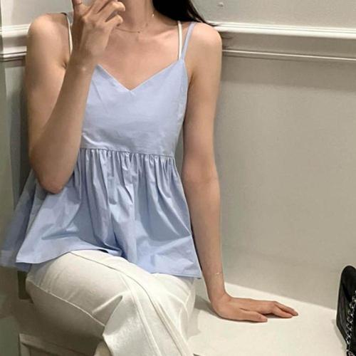 bns 페미닌한 무드 여름 뷔스티에 프릴 끈나시 블라우스 WFLRNB9