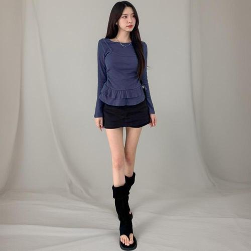 [미라클세븐]여성 프릴 디테일 긴팔 레이어드 티셔츠 뷔스티에
