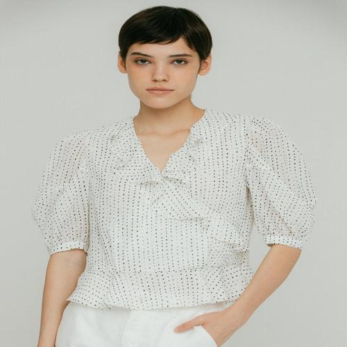 [BZJKP41D_4A]벌룬소매 프릴 도트 체형커버 긴팔 블라우스
