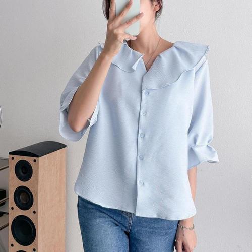 [셀러허브_여성트랜드패션]프릴 블라우스 여유핏 체형커버 벌룬소매