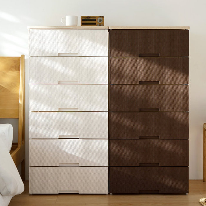 러쉬그레인 우드상판 와이드 플라스틱 서랍장 6단 옷 수납 정리함 수납장