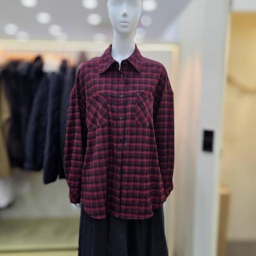 [플라스틱아일랜드]체크포켓 루즈핏 기모셔츠 블라우스(PQ4WB061)