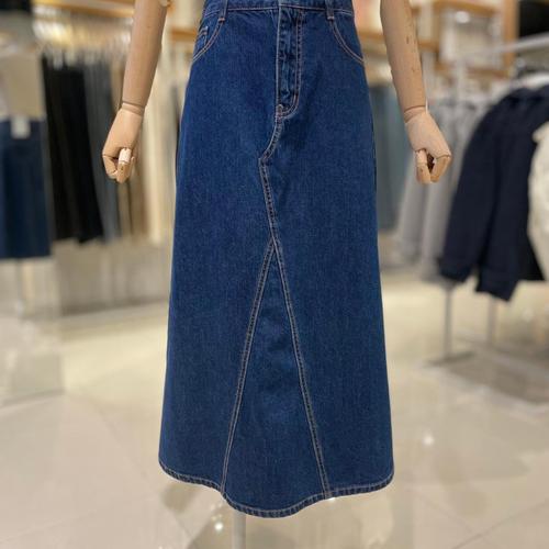 [플라스틱아일랜드]데님 앞트임 롱 스커트 PQ7DS201_DJ