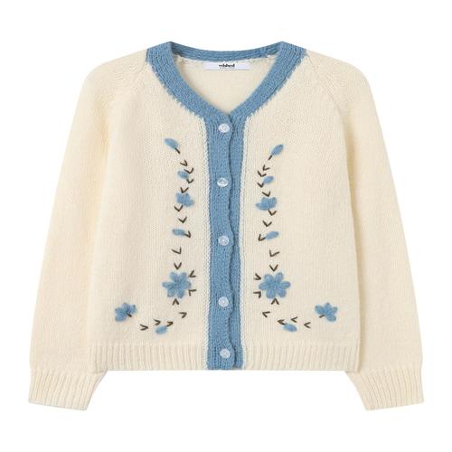 바인브랜치 울혼방 꽃자수 스티치카라 니트 버튼 가디건
