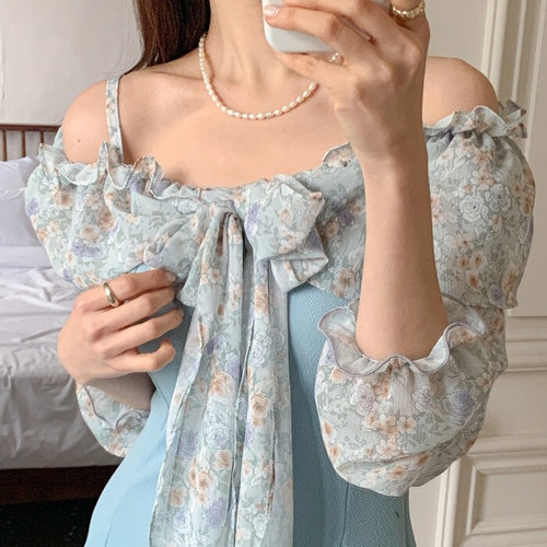 [에이치플러스몰]러블리 플라워 오프숄더 퍼프 반팔 블라우스