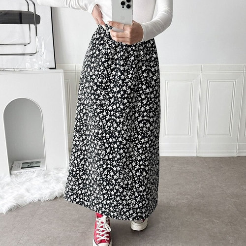 [모노무드]모노무드 허리밴딩 플라워패턴 롱 스커트 A라인 데일리 여친룩