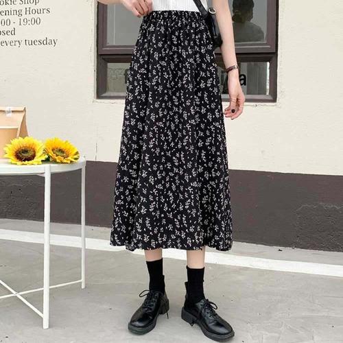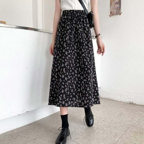 슈팅스타 / 허리 밴딩 쉬폰 플라워 A라인 롱 스커트