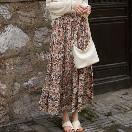 데일리앤 페레스 플라워 셔링 주름 밴딩 플레어 롱 스커트 가을 A라인 꽃무늬 치마