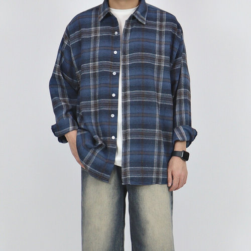 아웃핏스토어 / 남자체크셔츠 남자오버핏남방 플란넬셔츠