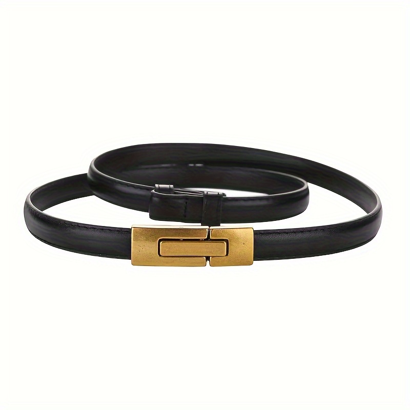 TEMU 1개 여성용 조절 가능한 스키니 벨트 - 진짜 가죽 느낌 (특허/인조) 슬림 허리 벨트, 골드톤 합금 버클, 블랙/브라운/베이지/누드 톤 - 웨딩, 파티, 드레스 벨트, 드레스, 스커트, 캐주얼 & 포멀 웨어용 (세탁 불필요)