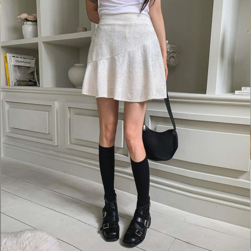 [하프클럽/]모던 니트웨어 주름스웨트 플레어핏 미니스커트