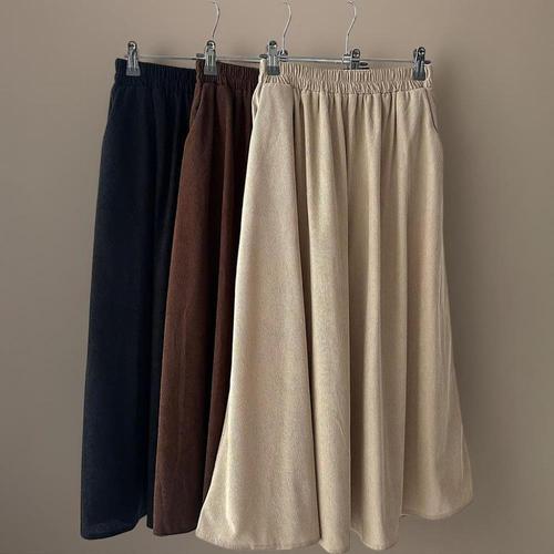 [신상오픈런]여성 코듀로이 롱스커트 가을용 브라운 밴딩 플레어 치마