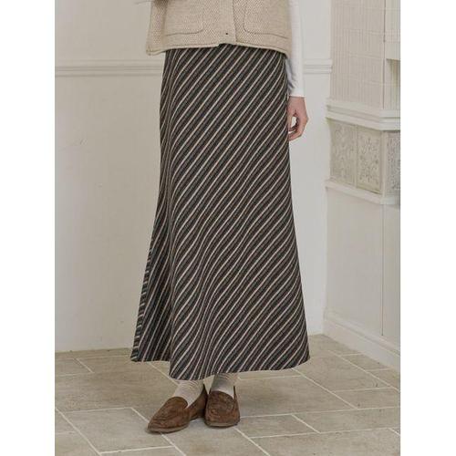 [위시드]사선 스트라이프 롱 플레어 스커트 (WICCSK009)