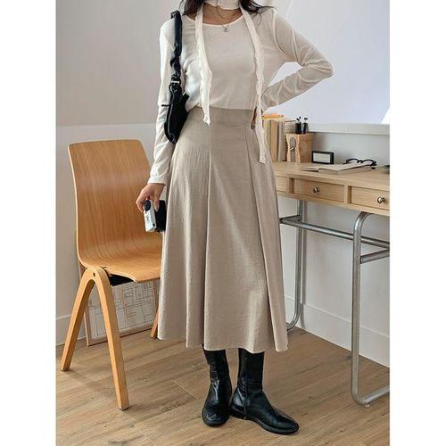 베스트 여자 내추럴 세미플레어 밴드라인데일리 롱스커트