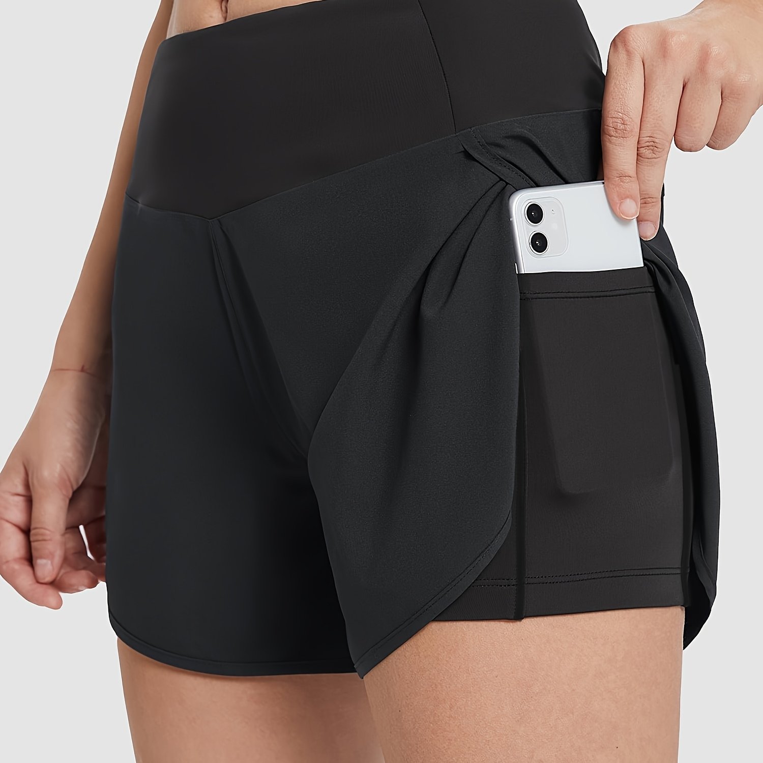TEMU 여성용 하이웨이스트 스포츠 반바지 (러닝 및 요가용), 노출 방지 포켓 포함