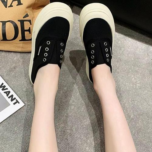 [다잇템]여성 검정 흰색 플랫슈즈 펀칭 통기성 슬립온