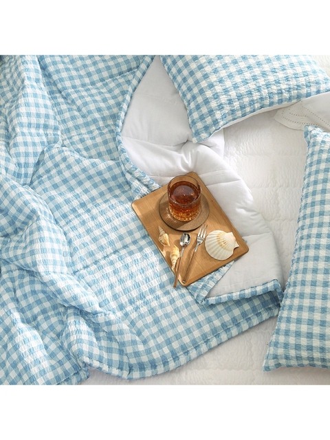 [플로라] 인디체크 시어서커X아사면 간절기 차렵이불 Q/K (3컬러)