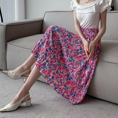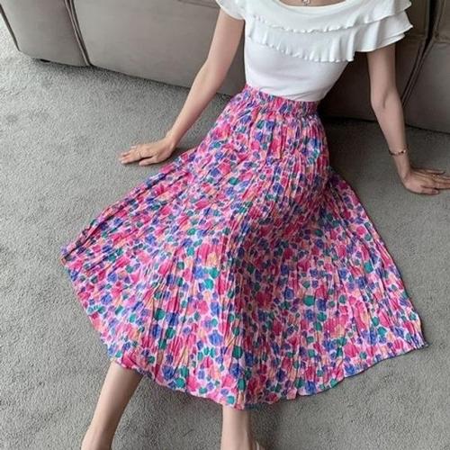 [엄지척]롱치마 F006788 치마 플리츠 핑크플라워 롱스커트 밴_19952729_667501