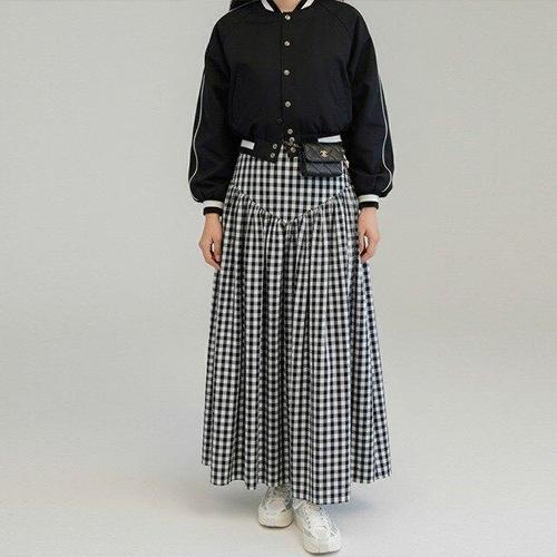 [핑크엘리제]하이웨이스트 체크 플리츠 케리다인롱스커트