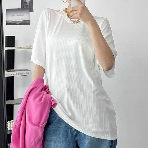 [옷자락]여자 찰랑핏 플리츠 라운드넥 오버핏반팔 남자 티셔츠