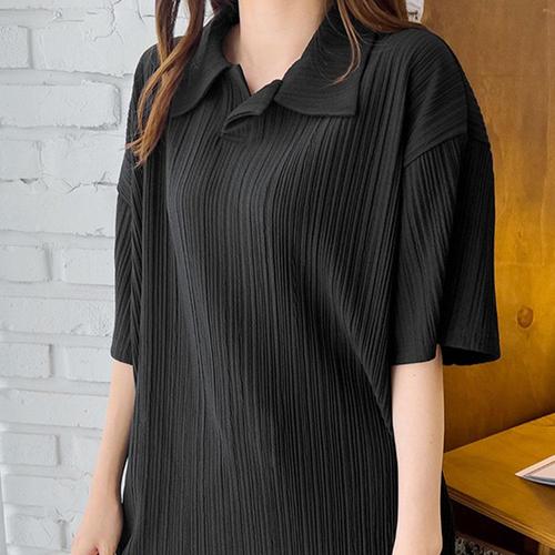 [리빌모아]남여공용 여름 카라 플리츠 반팔 티셔츠 5C-KAH-Q055-블랙