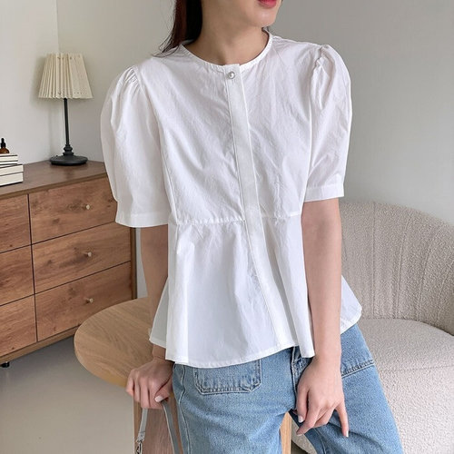 플러리싱 / 진주 백플리츠 퍼프 반팔 블라우스 플러리싱