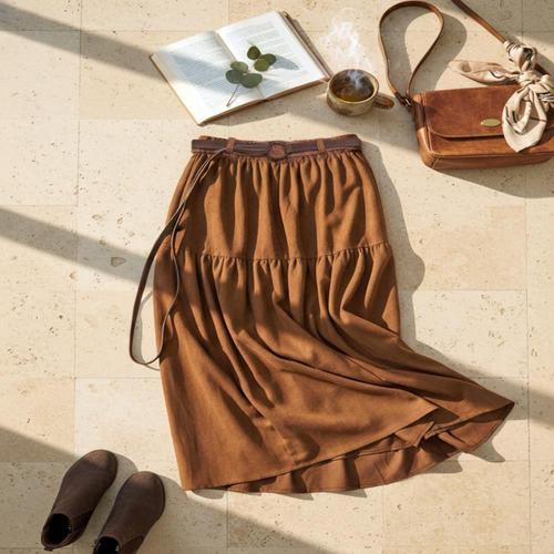 [미라클세븐]여성 키치 스타일 벨트 플리츠 롱 스커트