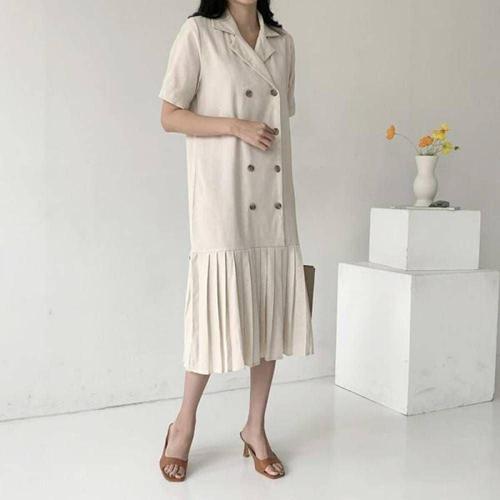 버튼 데님 트위드 플리츠 여성 하객 온나핏 라 WFKPDP8